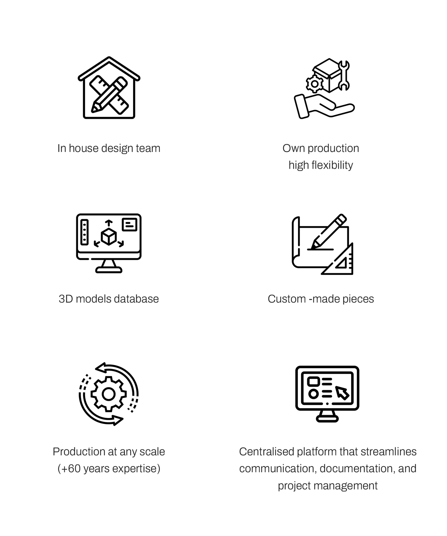 Own production facilities, enabling high flexibility from bespoke adaptations to fully custom-made pieces