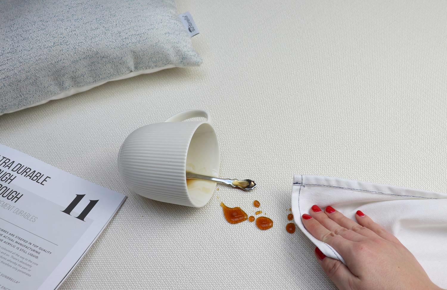 One of the best ways to keep Sunbrella® fabrics looking good is to brush off dirt before it becomes embedded in the fabrics and wipe up spills or clean soon after a spill occurs. The quicker you clean spills, the easier they can be to remove.